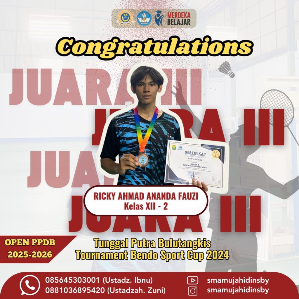 Lagi-lagi peserta didik SMA Mujahidin menyabet juara. Kali ini di bidang olah-raga badminton.